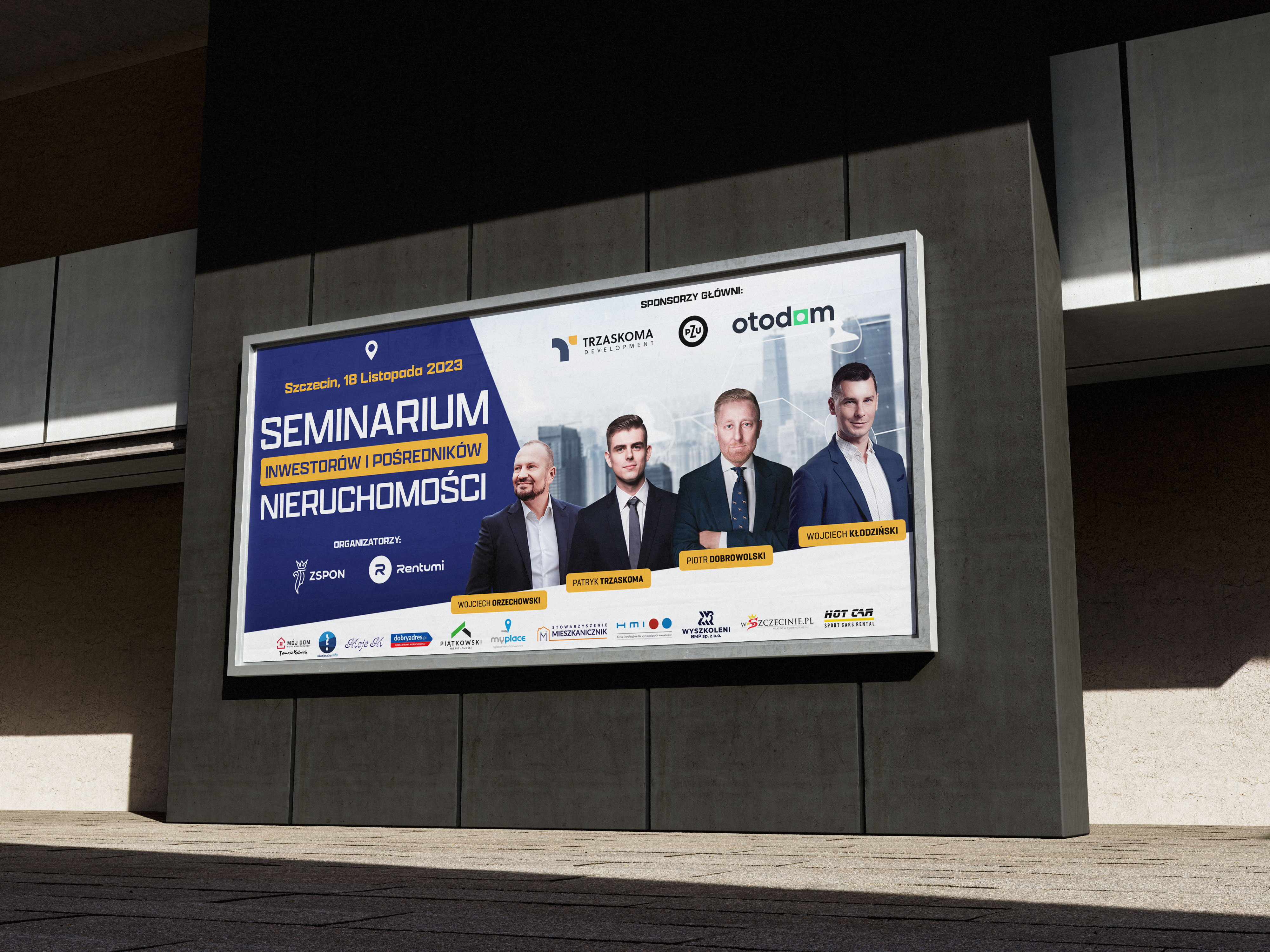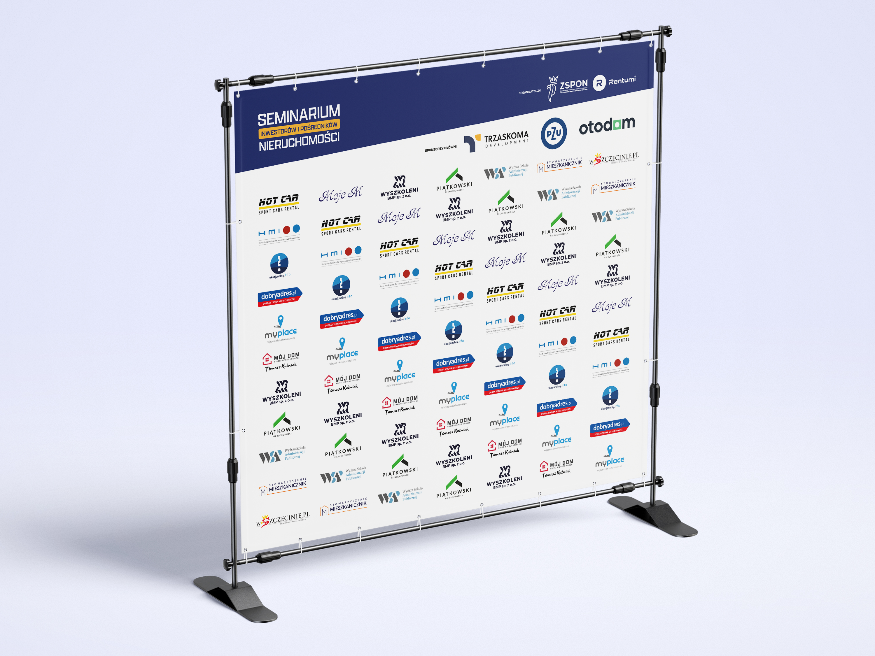 Identyfikacja wizualna eventu szkoleniowego. Baner, posty informacyje ze sponsorami, tematami prelekcji na social media. Identyfikator, ścianka sponsorska oraz prezentacja tematyczna.